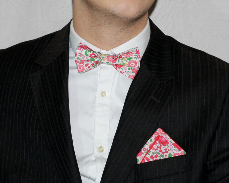 Choisir son noeud papillon a fleur, pourquoi pas le tissu Liberty Betsy ? Vous trouverez ci-dessous quelques coloris classiques et des coloris plus rares. J’adore l’imprimé à droite avec les couleurs rouge et vert pale. Si vous êtes un nouveau
